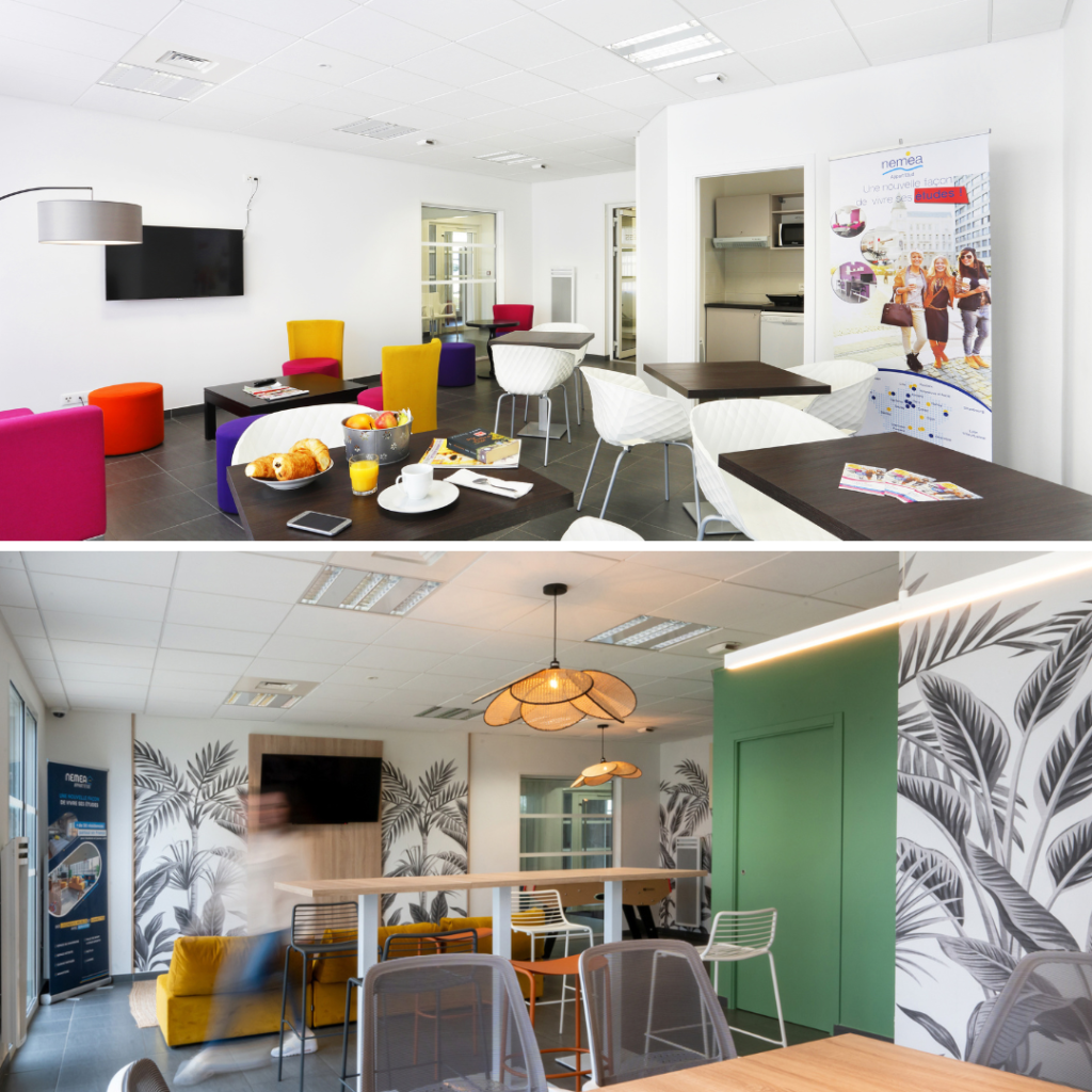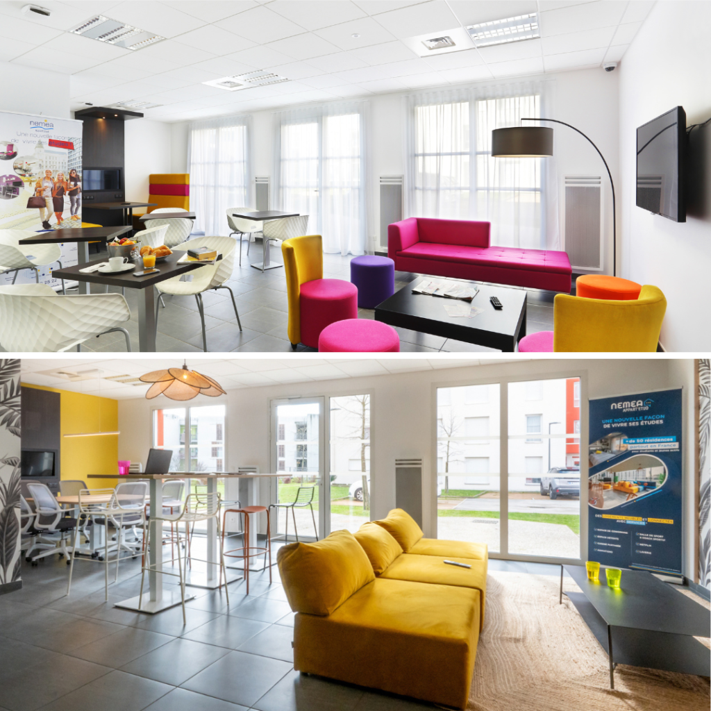 Entre 2023 et 2024, plusieurs résidences étudiantes Nemea Appart’Etud ont été modernisées pour offrir aux étudiants un cadre de vie aussi fonctionnel qu’inspirant :